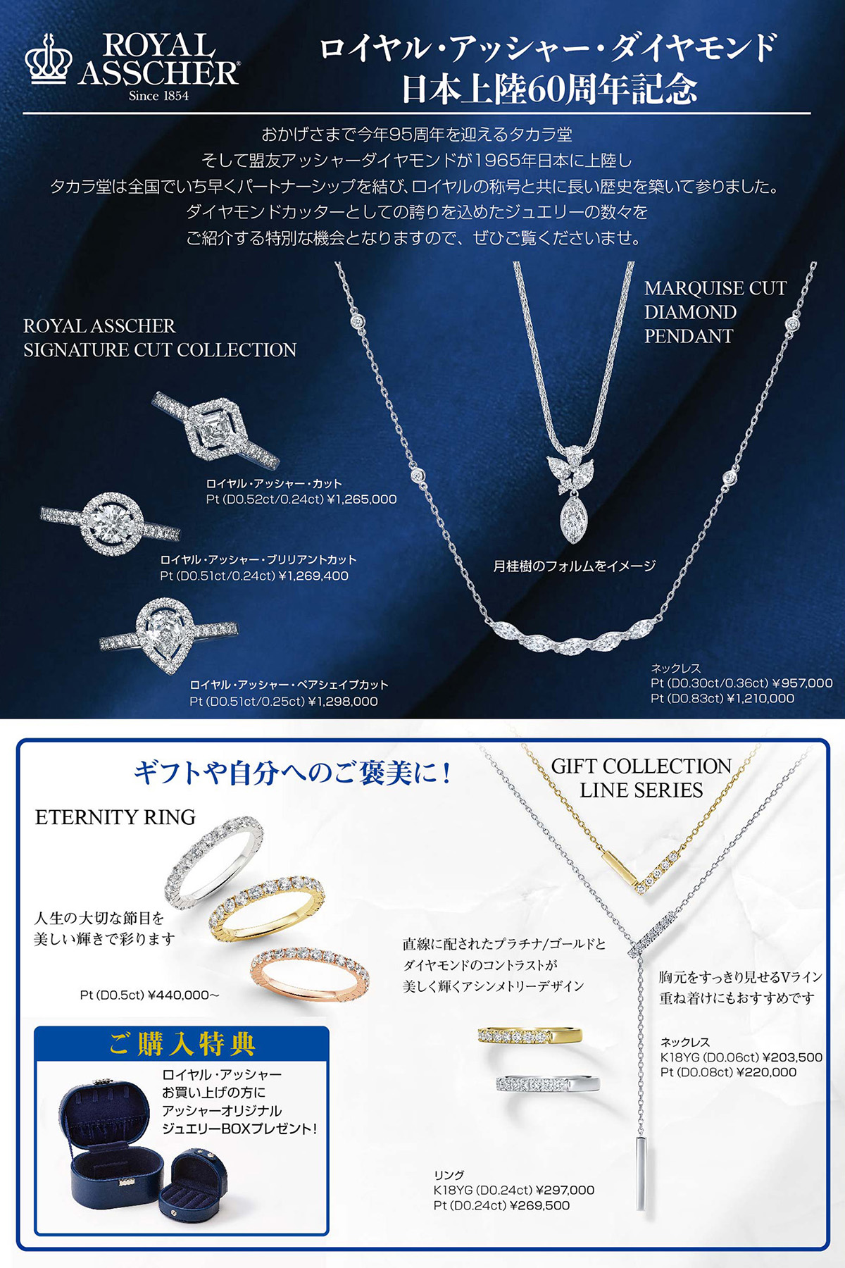 アッシャーダイヤモンドが日本に上陸してから、全国でいち早くパートナーシップを結び、ともに長い歴史と信頼関係を築いてきた〈ロイヤル・アッシャー〉とタカラ堂。