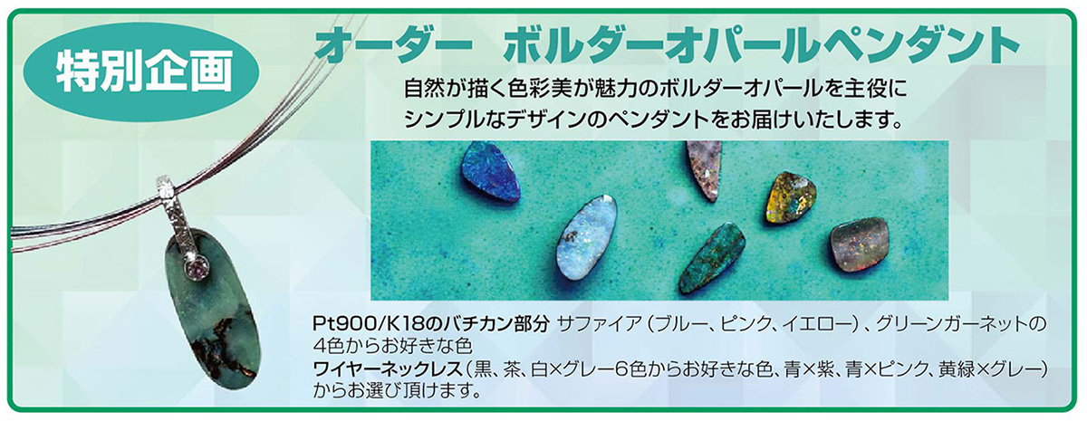 今回、お好きなボルダーオパールを選んでいただき、シンプルなデザインで気軽に楽しめるネックレスに仕上げる特別企画品を限定8点ご用意しました。
