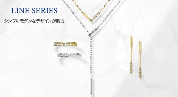 シンプルとモダンを融合させた「ラインシリーズ」。ダイヤモンドのラインとバーが描き出す直線美が、洗練された都会的な印象を演出します。