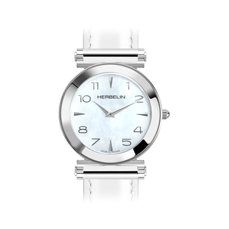 ラウンドケースが柔らかな印象。マザーオブパールの文字盤には大きなアラビア数字があり見やすさも魅力。どんなシーンでもスタイルでも使いやすいデザインです。優雅で美しい印象のアンタレスコレクションをお楽しみください。
