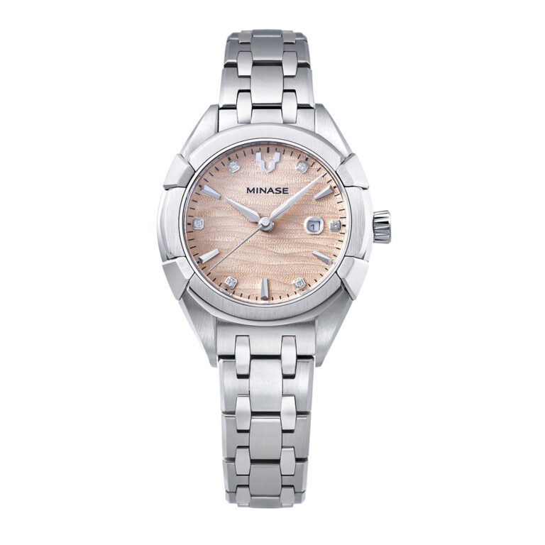 皆瀬川を静かに流れる水流から着想を得たダイアルの模様は、横方向に美しいグラデーションを描き、エレガントながらも落ち着いた 大人の品格が現れています。