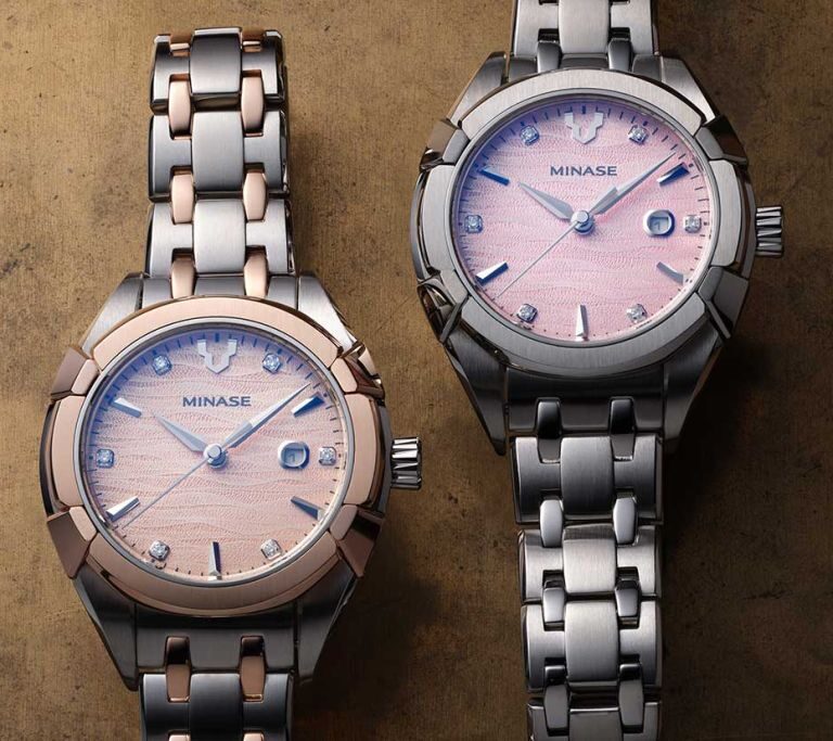 URUGAのコレクション名は、日本語の麗しいという言葉をもとにしています。日本人が麗しいから連想するのは、上品、高貴さ、精神的な気高さ。この日本固有の美を表現するためにMINASEは、時計全体を麗しい宝石に見立て、ベゼル、ガラス、ケースを上下から4つの爪で挟み込んだ 世界に類を見ないクランピング構造を備えたURUGAのコレクションを誕生させました。